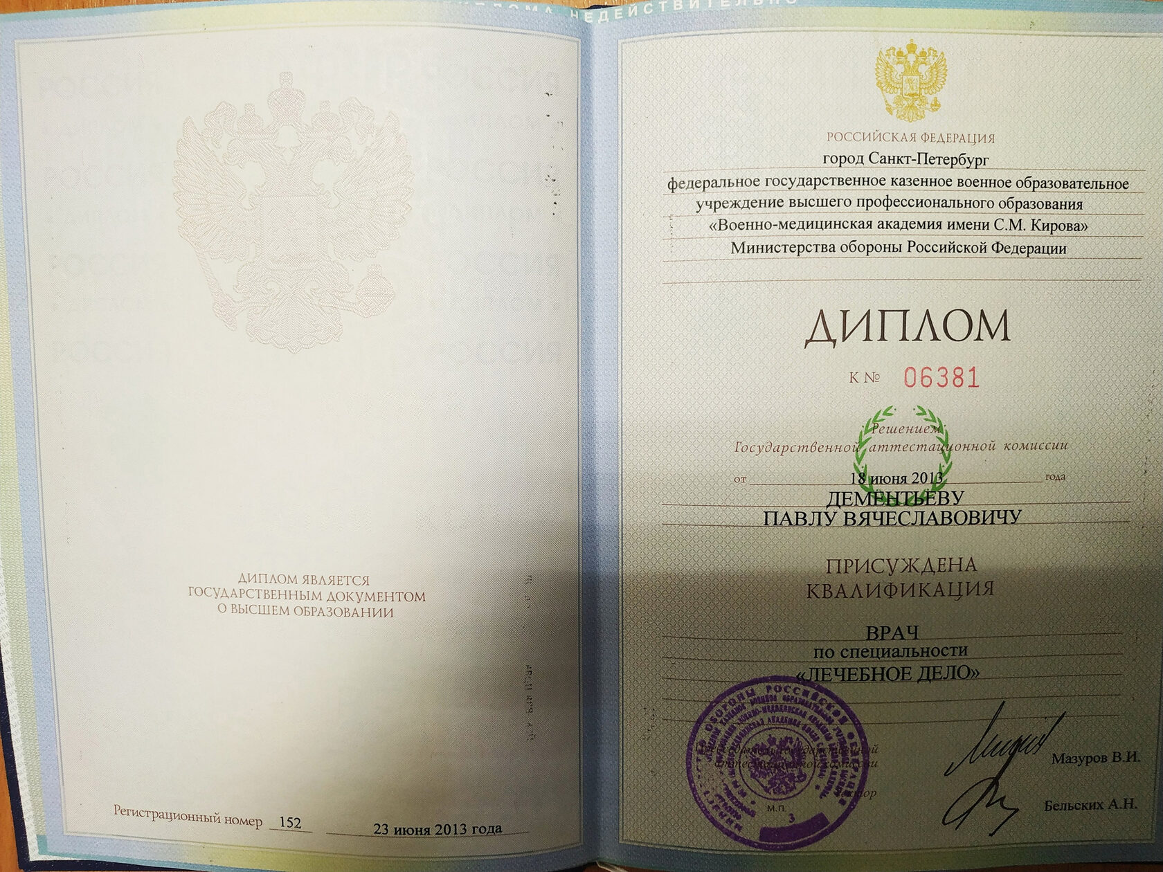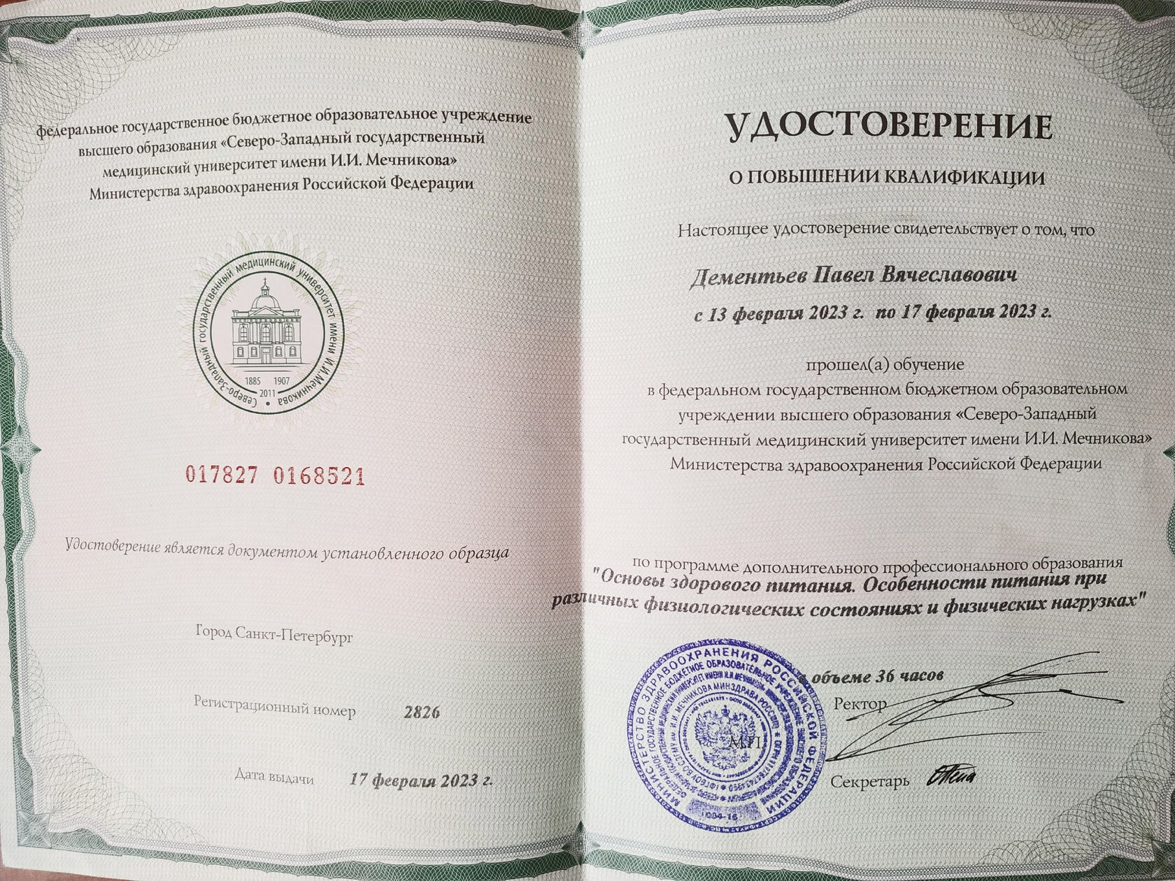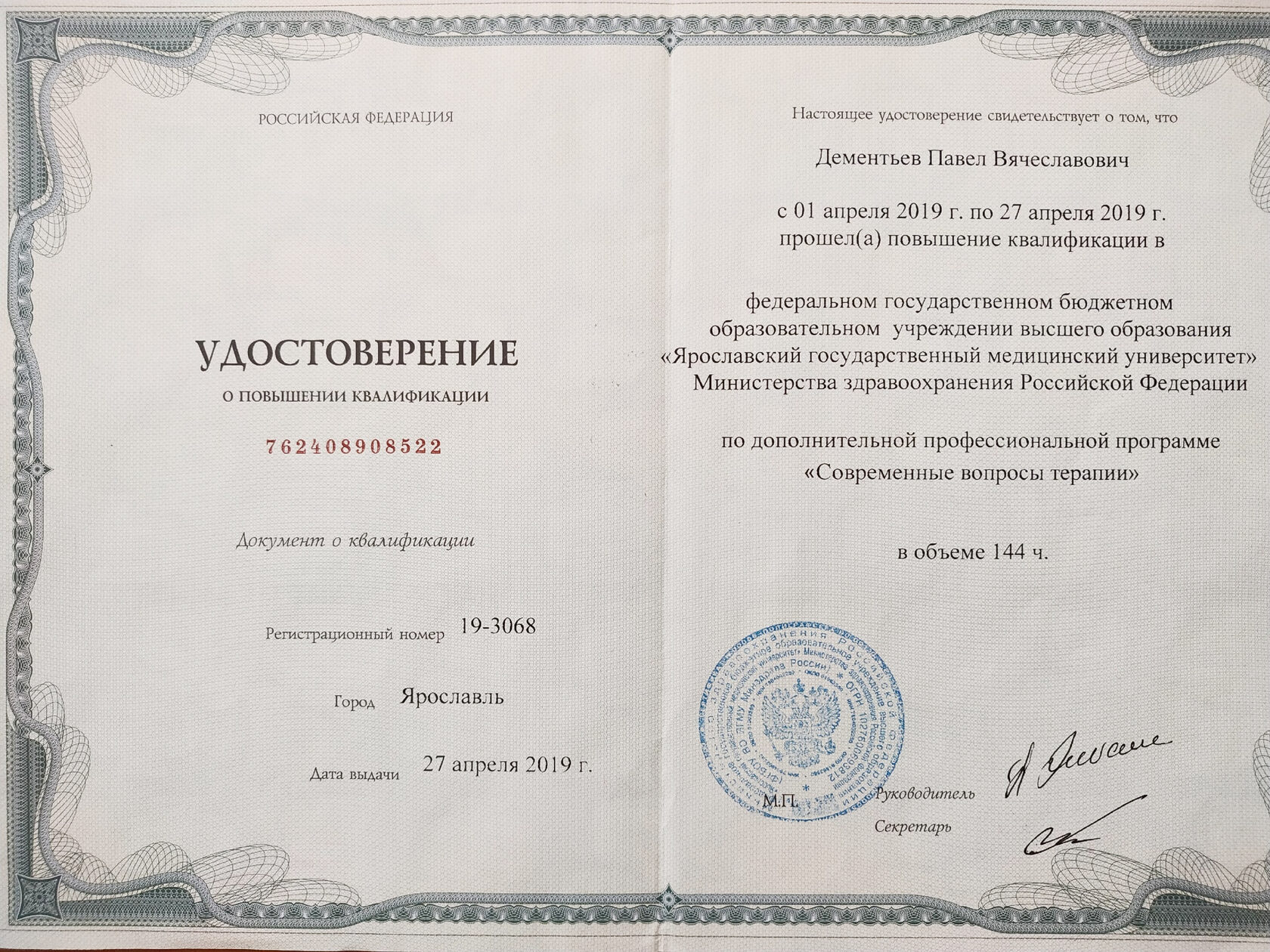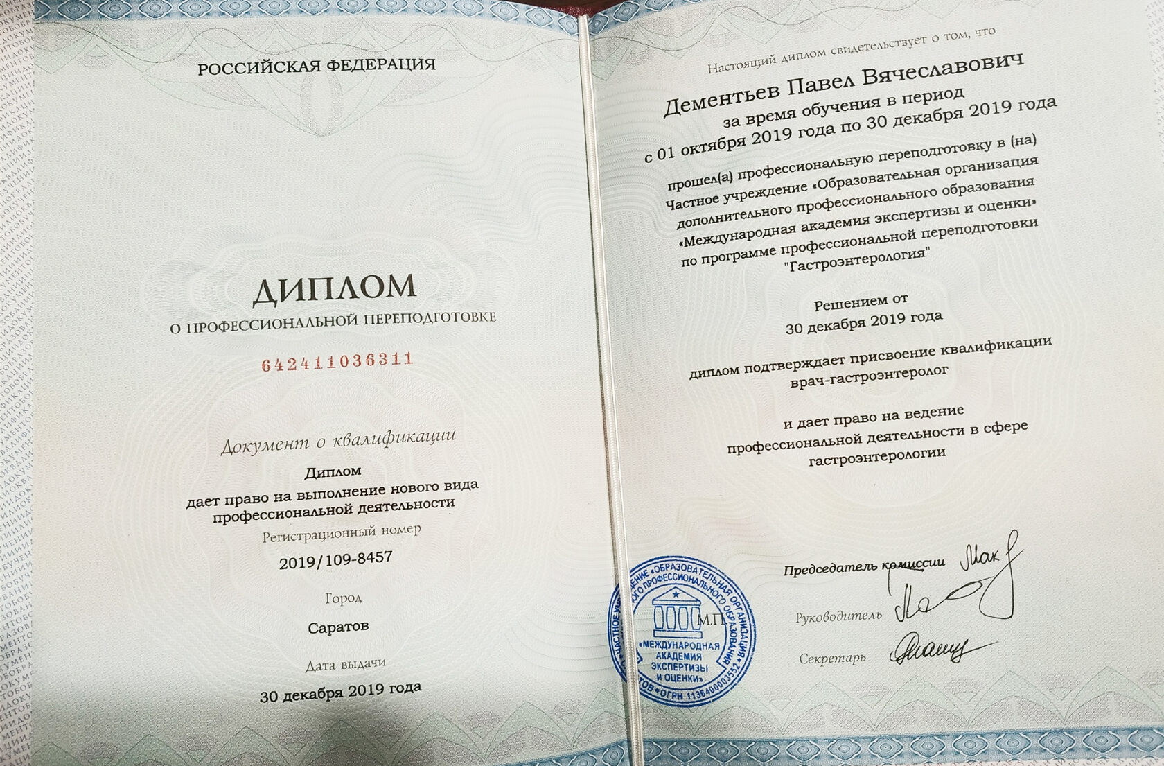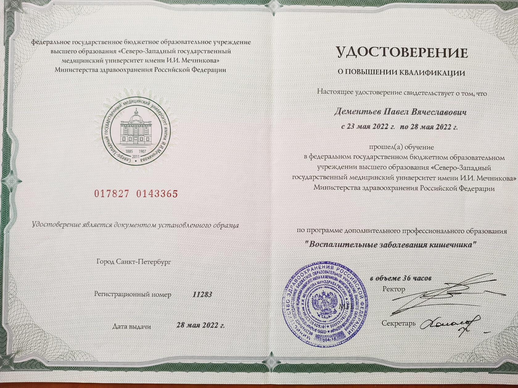 Дипломы и сертификаты врача Павла Дементьева